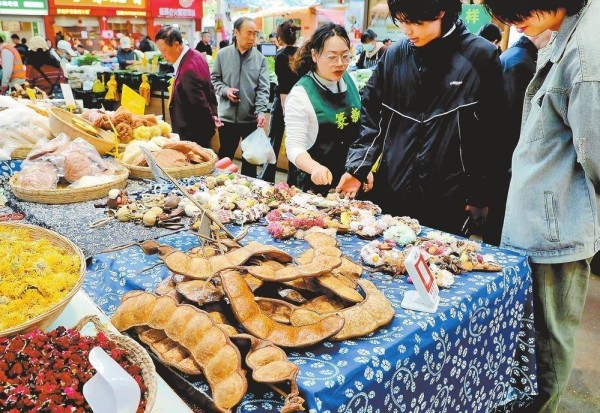 近段时间以来,随着“带巨型豆荚坐飞机”的视频在社交平台走红,这个源自云南山野的天然果实,迅速俘获年轻消费群体,成为颇具代表性的云南伴手礼。在昆明大观篆新农贸市场,用云南榼藤豆荚制作的各种手作工艺品吸引了众多市民游客前来选购。(记者 杨峥)