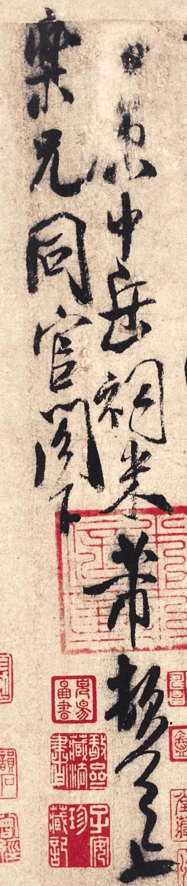 并且这种单字当中的轴线变化,到了行气上就成了一种不断摇摆的势态,使得整卷换面呈现出极为丰富的表现力,这便是“风樯阵马”的意思所在。苏东坡说他的书法是“出新意于法度之中,寄妙理于豪放之外”,极为贴切评价其书法的真实状态。