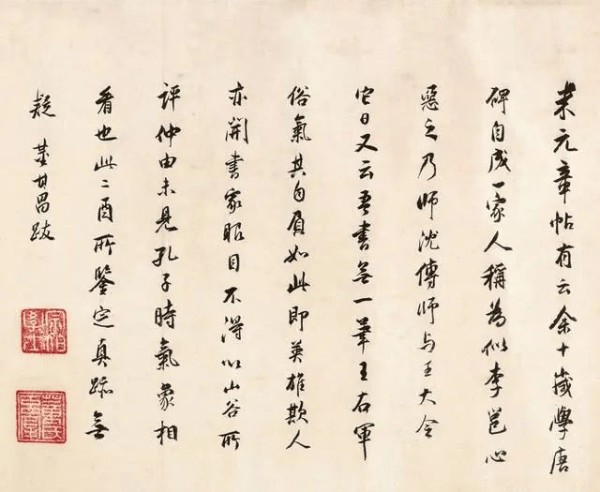 他的这种革新,是以自己独有的个性,将晋唐笔法做出了更为夸张的演绎,使得他成为了后世迹近晋唐法书大门一个绝好的敲门砖。