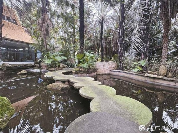 走进植物园棕榈植物区,在导航软件搜索“棕野云涧”,循着指引便能看见一串圆盘状石桥贴着水面蜿蜒向前,桥边棕榈高低错落,粗壮树干与垂落枯叶交织出一片幽深景致。站在桥头细看,熟悉感扑面而来——这正是最近被不少网友反复“考古”的1986版《西游记》取景地之一。不少网友留言说,“看了这么多年《西游记》,第一次知道竟然在厦门拍过”“怪不得植物园这么眼熟”。也有一些本地人表示,这并非“冷知识”,只是时间过去太久,许多人一时没把童年记忆和眼前景象对上号。