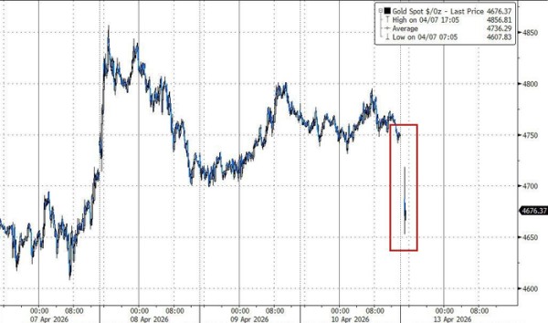 财联社4月13日讯(编辑 潇湘)由于周末美伊和平谈判无果而终,加之美国封锁霍尔木兹海峡的计划加剧了全球能源供应冲击,令市场对通胀的担忧迅速升温,周一开盘后不久黄金和美债双双走低,市场再度出现了恐慌环境下“避险资产不避险”的奇葩一幕……