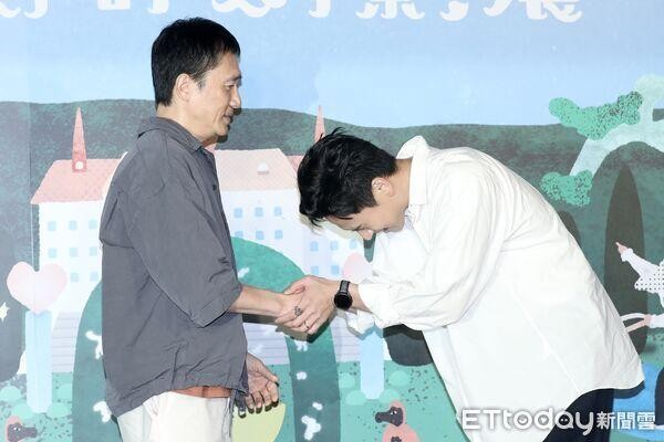 刘冠廷(右)担任与谈人,一见到梁朝伟马上鞠躬。(图/摄影中心摄)