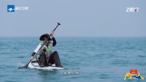 李昀锐贺峻霖皮划艇对决,跪姿划船动力拉满