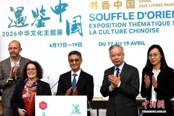 当地时间4月17日,“遇鉴中国”中华文化主题展亮相2026年巴黎图书节。中国外文局总编辑高岸明、前法国驻华大使白林、中国驻法国大使馆公使陈力等出席展览开幕式。 中新社记者 李洋 摄