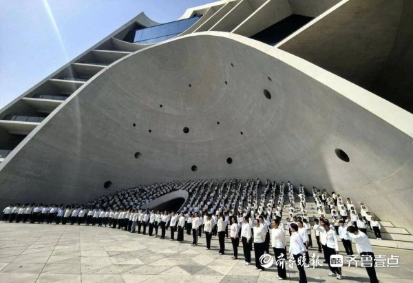 来自黄渤海新区的机关干部、师生代表、企业职工、社区群众以及阅读爱好者共计1000余人,身着白色服装,在室外剧场阶梯上依次排开。面向浩瀚大海与绵延的金沙滩,头顶是“舞乐山海”的广阔天空。在专业朗诵老师的领诵与指导下,全体诵读者声情并茂地演绎了精心准备的合诵篇目。现场恢弘大气,吸引了大批市民驻足聆听、自发加入,场面极为震撼。