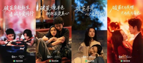 今日,腾讯视频萤火单元发布“破茧”系列海报,《纯真年代的爱情》《玫瑰丛生》《隐身的名字》《蜜语纪》《小芳出嫁》《闪耀如她》《美人余》等剧将目光锚定于以女性为代表的更多元社会个体,她们努力挣脱地域、情感、外貌等现实茧房,向内治愈和向外探索的破茧,同样引爆了市场期待。