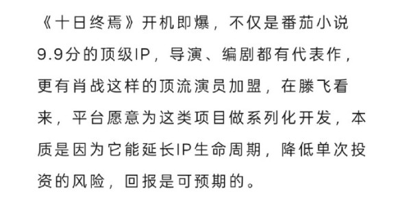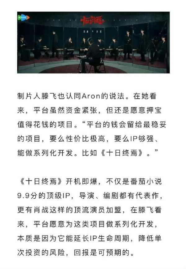 #平台愿意为肖战的项目买单#狐厂发文爆料:《十日终焉》开机即爆,平台因为有肖战这样的顶级演员加盟,并且顶级ip和好班底加持下,平台愿意为了这个项目买单,回报是可预期的。肖战的市场号召力真的太能打了#肖战的市场号召力#